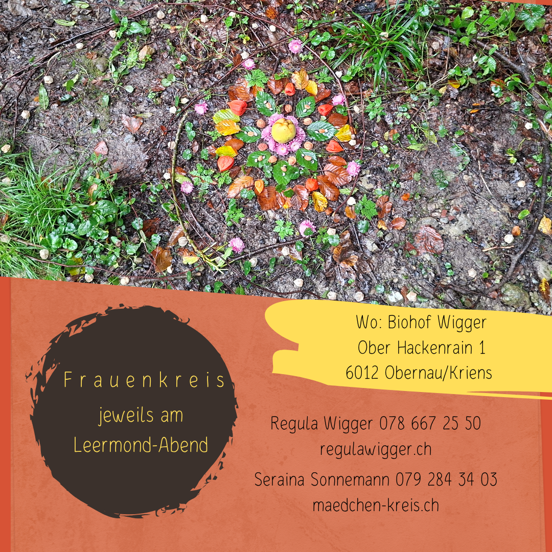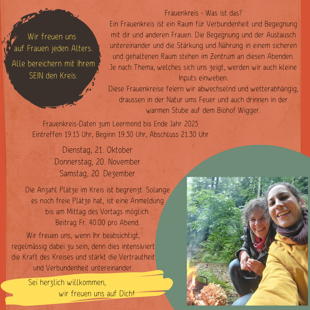 Frauenkreis jeweils zum Leermond๐: Eintreffen 19.15 Uhr auf dem Biohof Wigger, Beginn 19.30 Uhr, Abschluss 21.30 Uhr